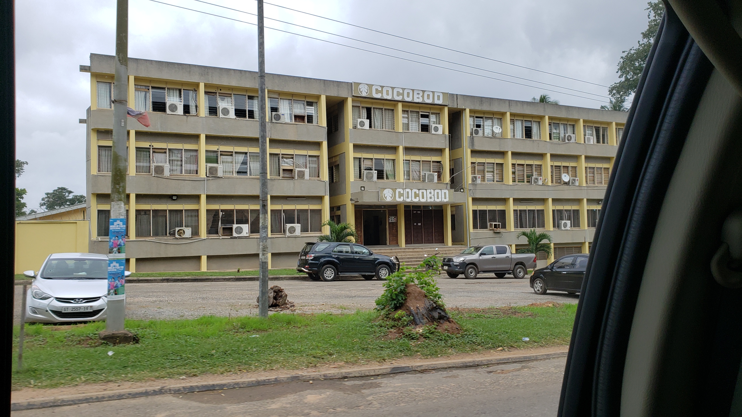 The COCOBOD sets the price of cocoa at the beginning of each season so farmers know what they will make on their cocoa. There are "Licensed Buying Companies" (LBC's) that are licensed by the government to purchase cocoa from farmers and sell it to COCOBOD. There are three LBC's in this community including Amanjelo, Amaranjo and PBC, the buying company that is owned by the Ghana government. Mr. Razak is a purchasing clerk for Amanjelo.